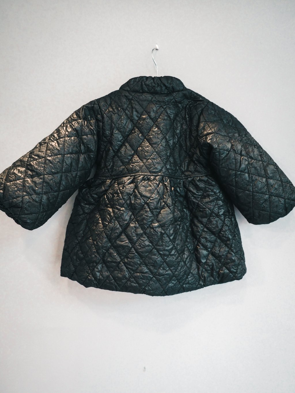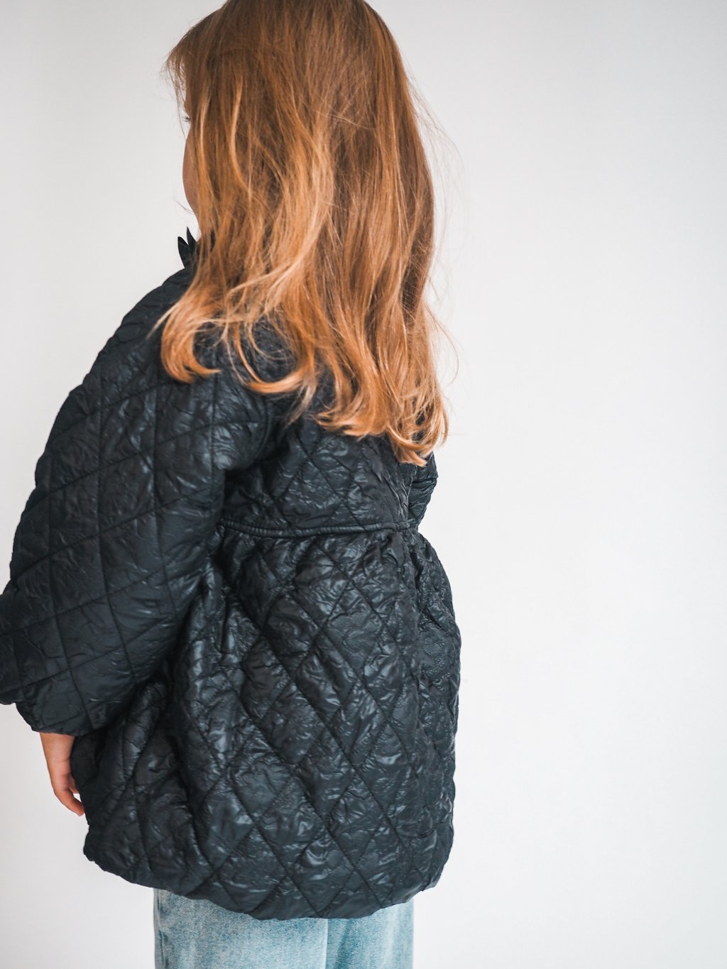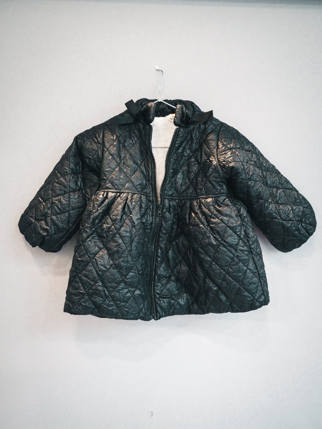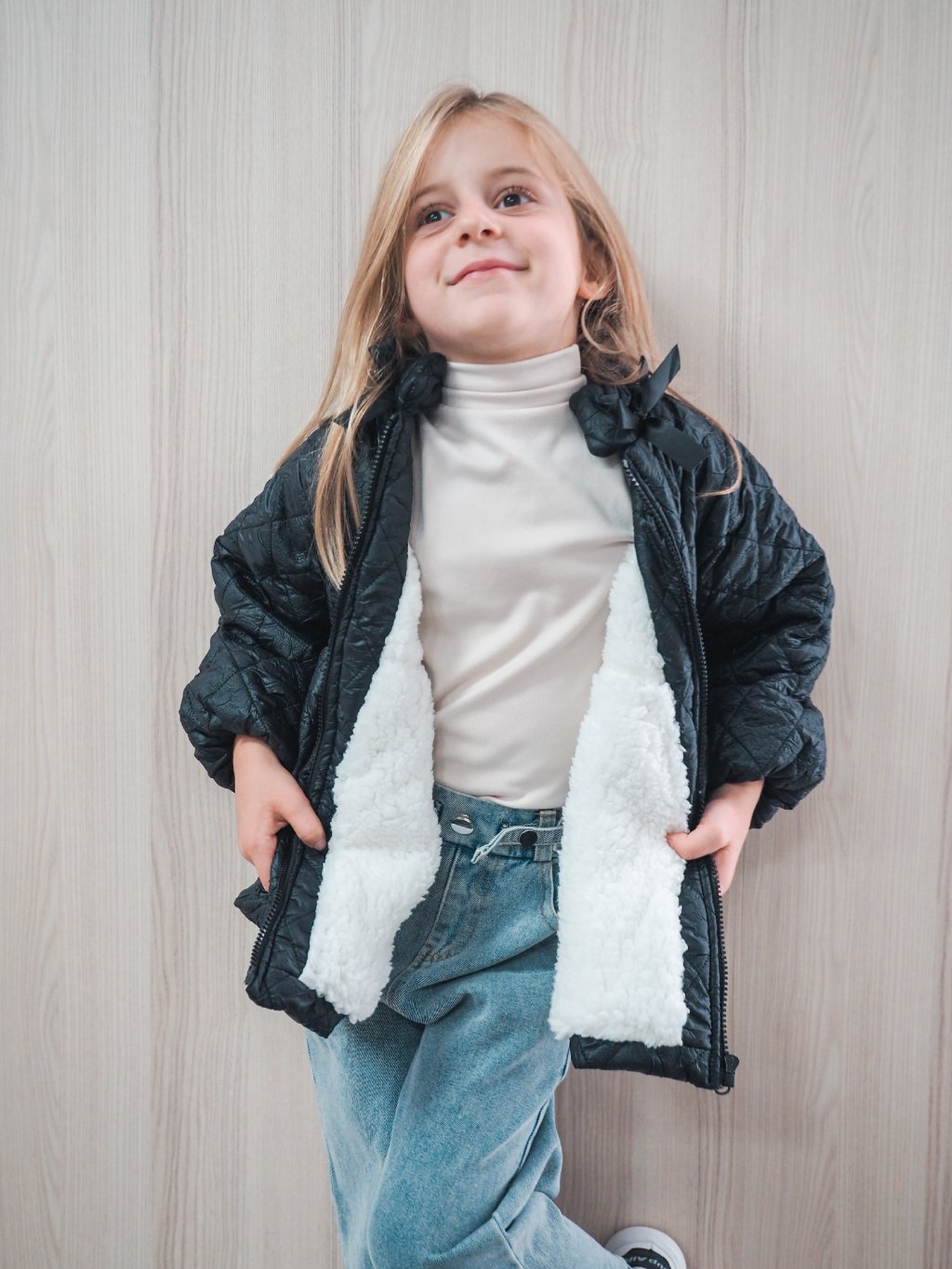 Dětská prošívaná bunda v černé barvě s kožíškem zevnitř.