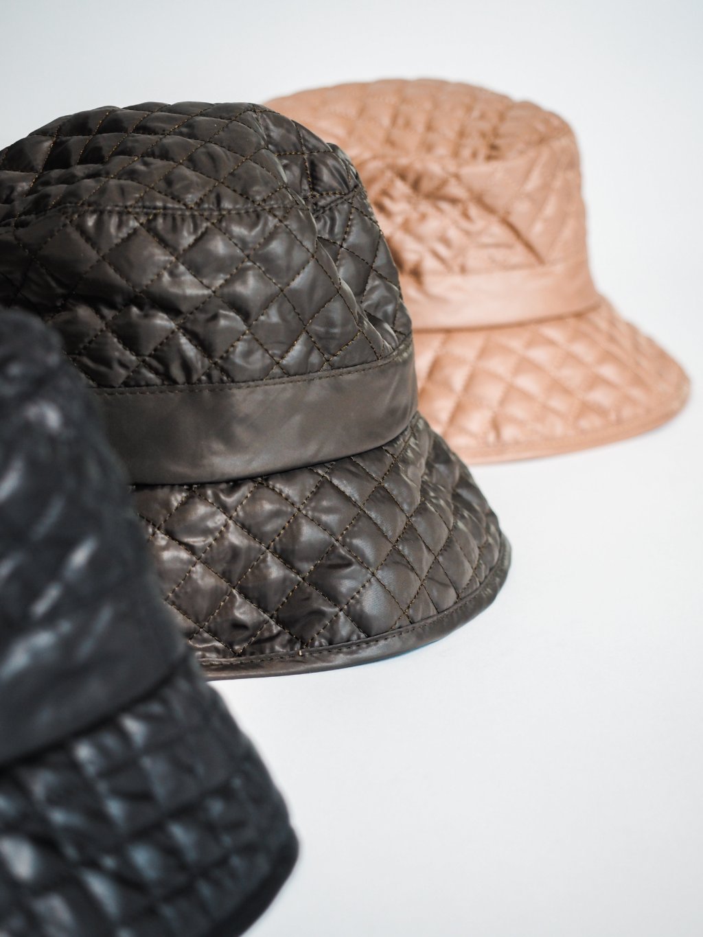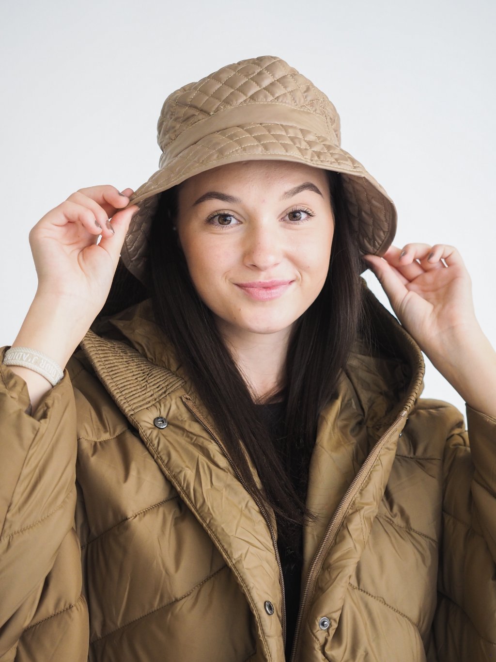 Dámský prošívaný klobouk v černé, khaki a béžové variantě.