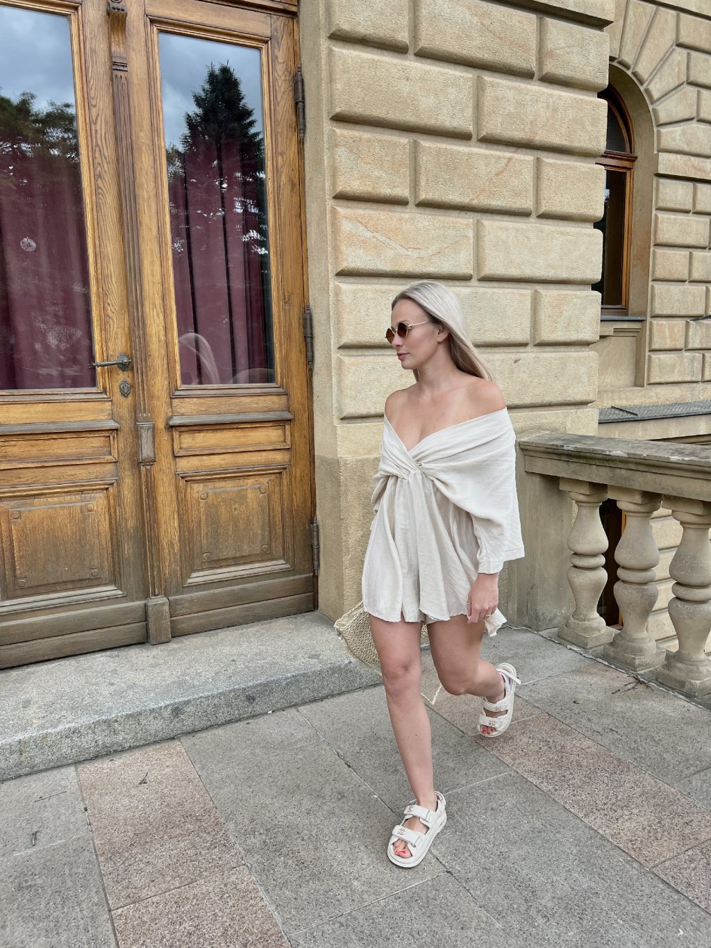 Lněný overal ve kterém se budete cítit pohodlně a trendy.