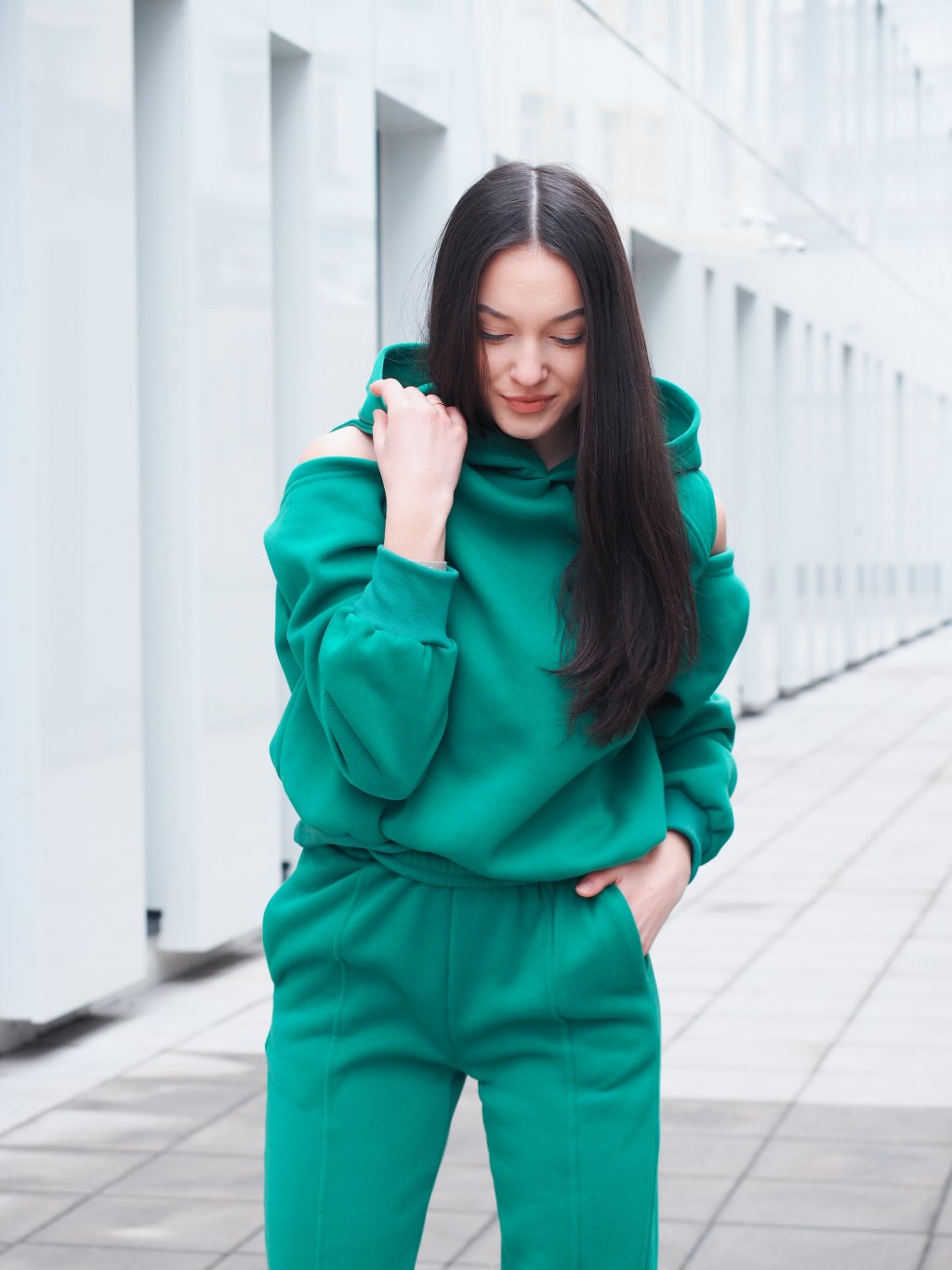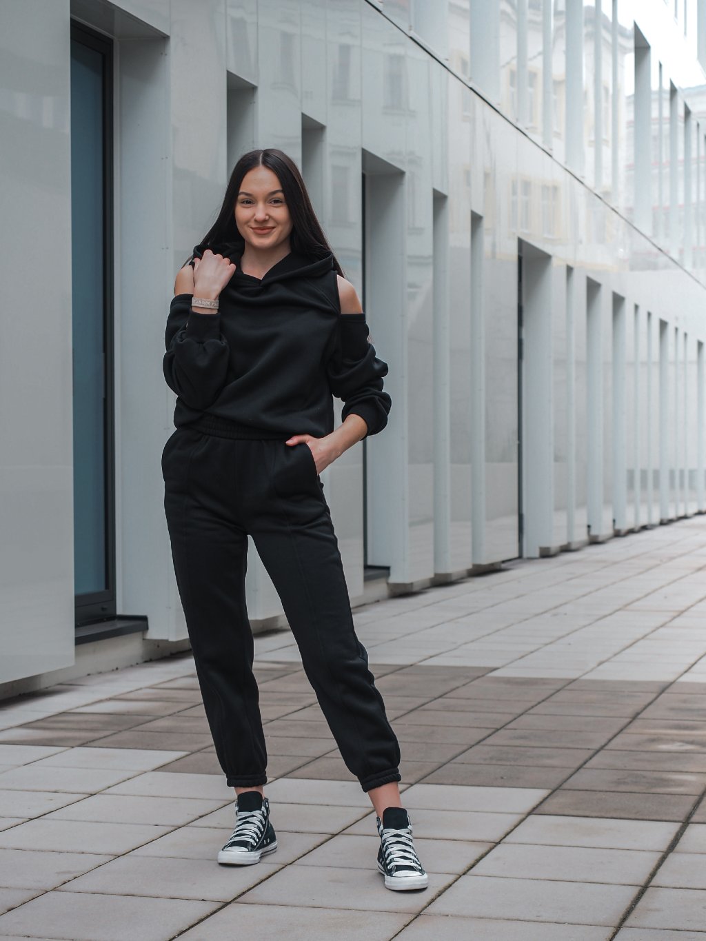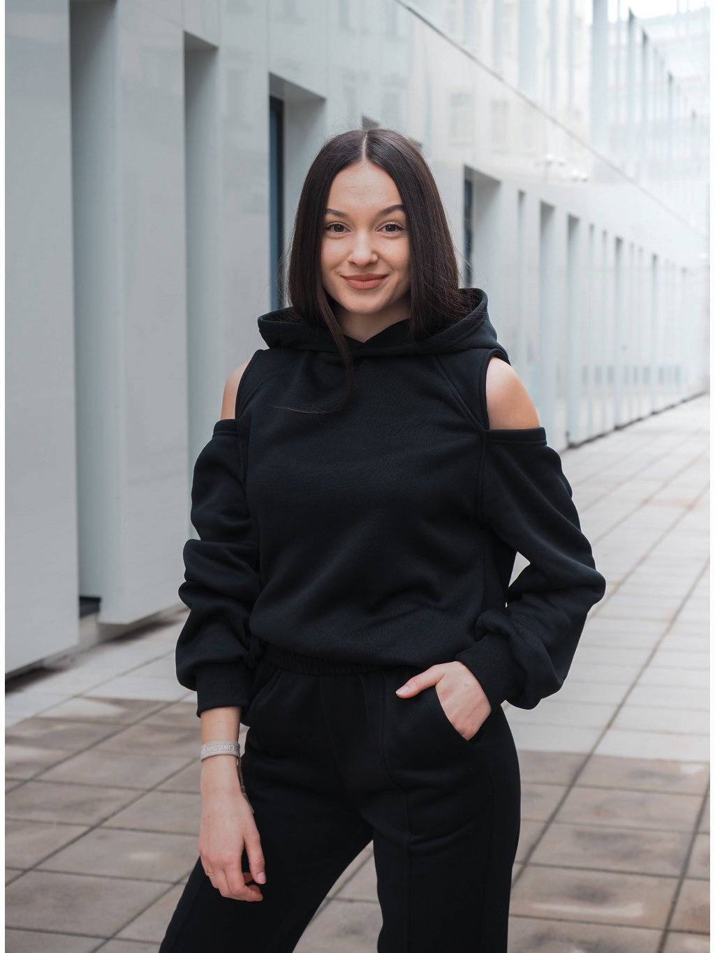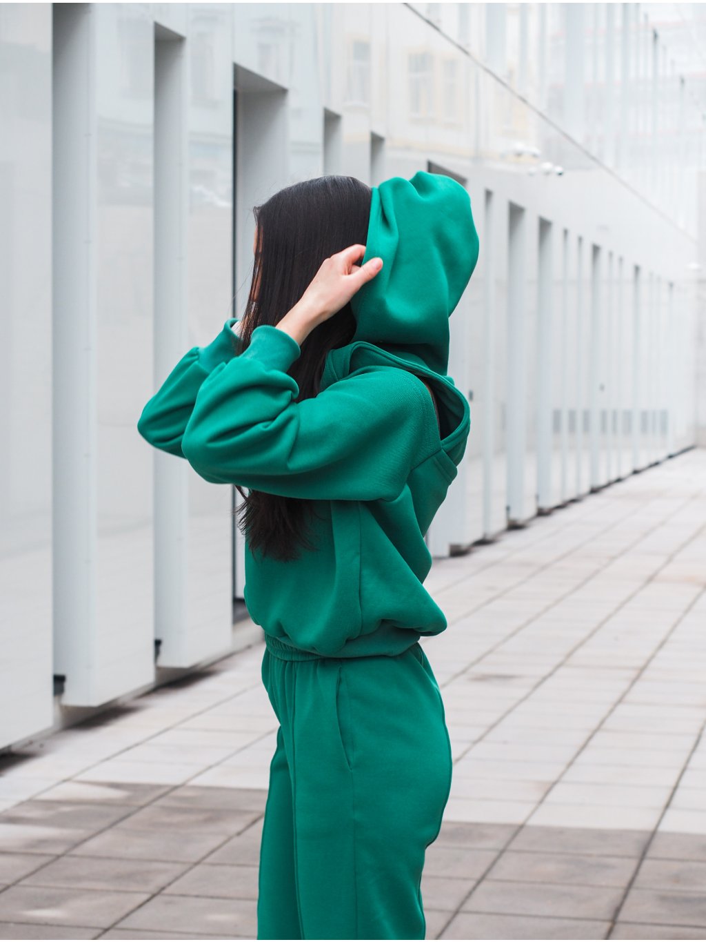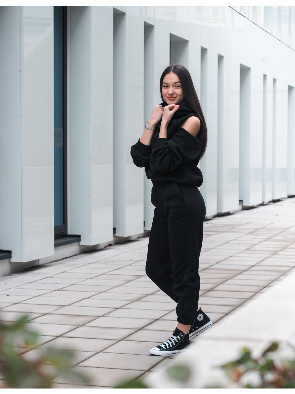 Dámská příjemná teplákovka s průstřihy na ramenou v černé a zelené barvě, ideální na jaro.