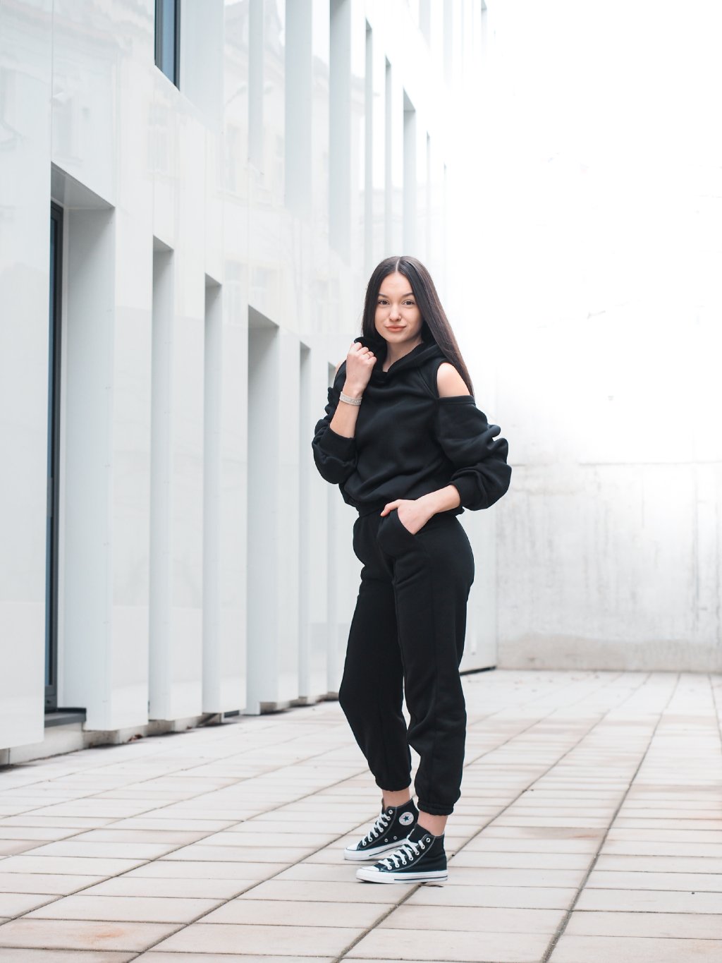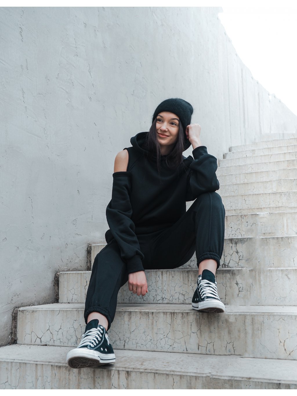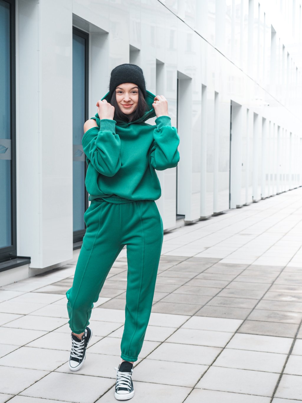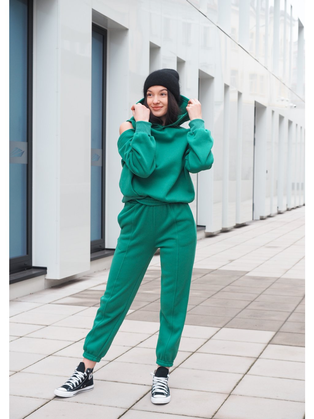 Dámská příjemná teplákovka s průstřihy na ramenou v černé a zelené barvě, ideální na jaro.
