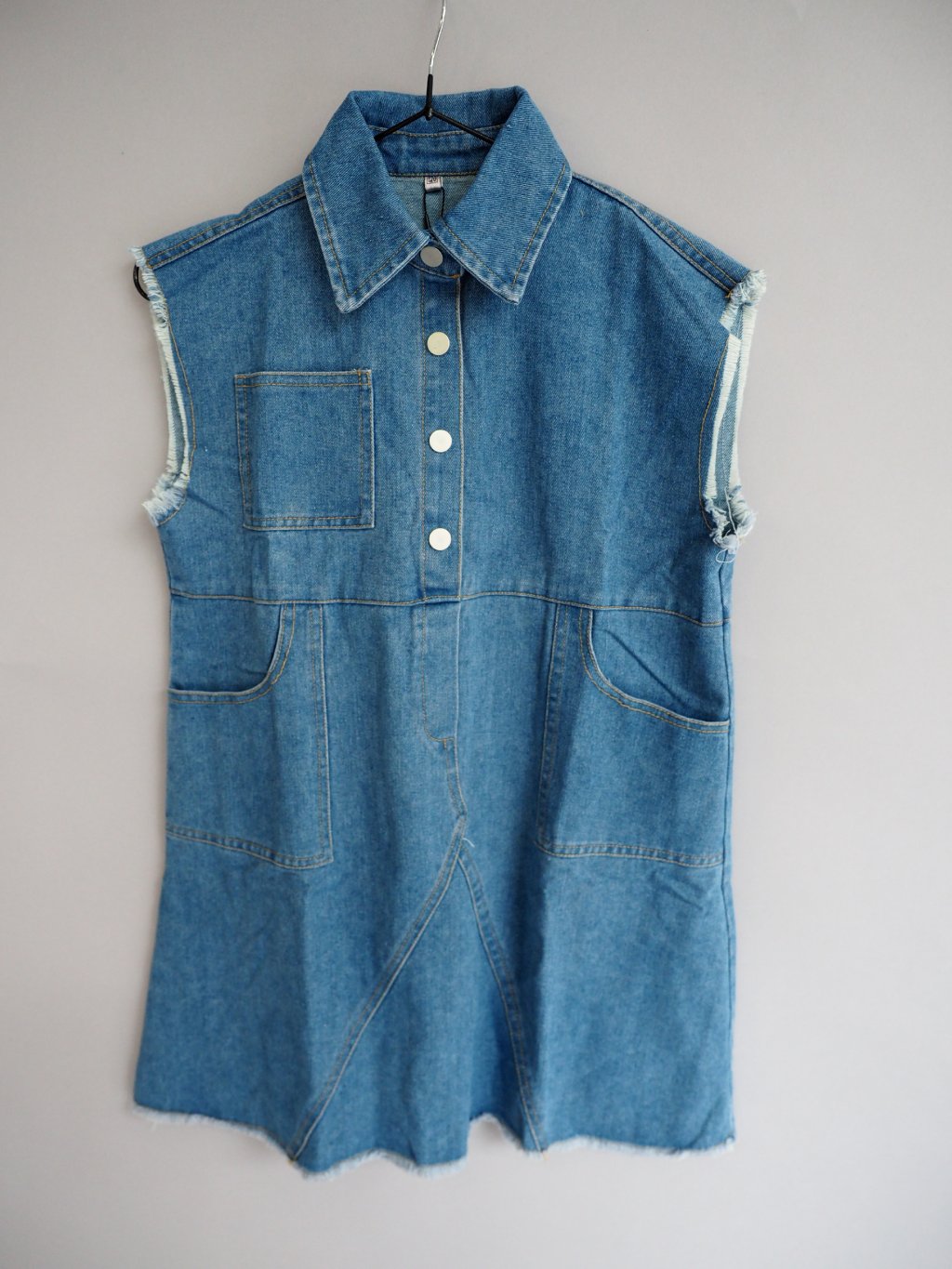 Příjemné džínové šaty s knoflíčky u krku a stojáčkem.