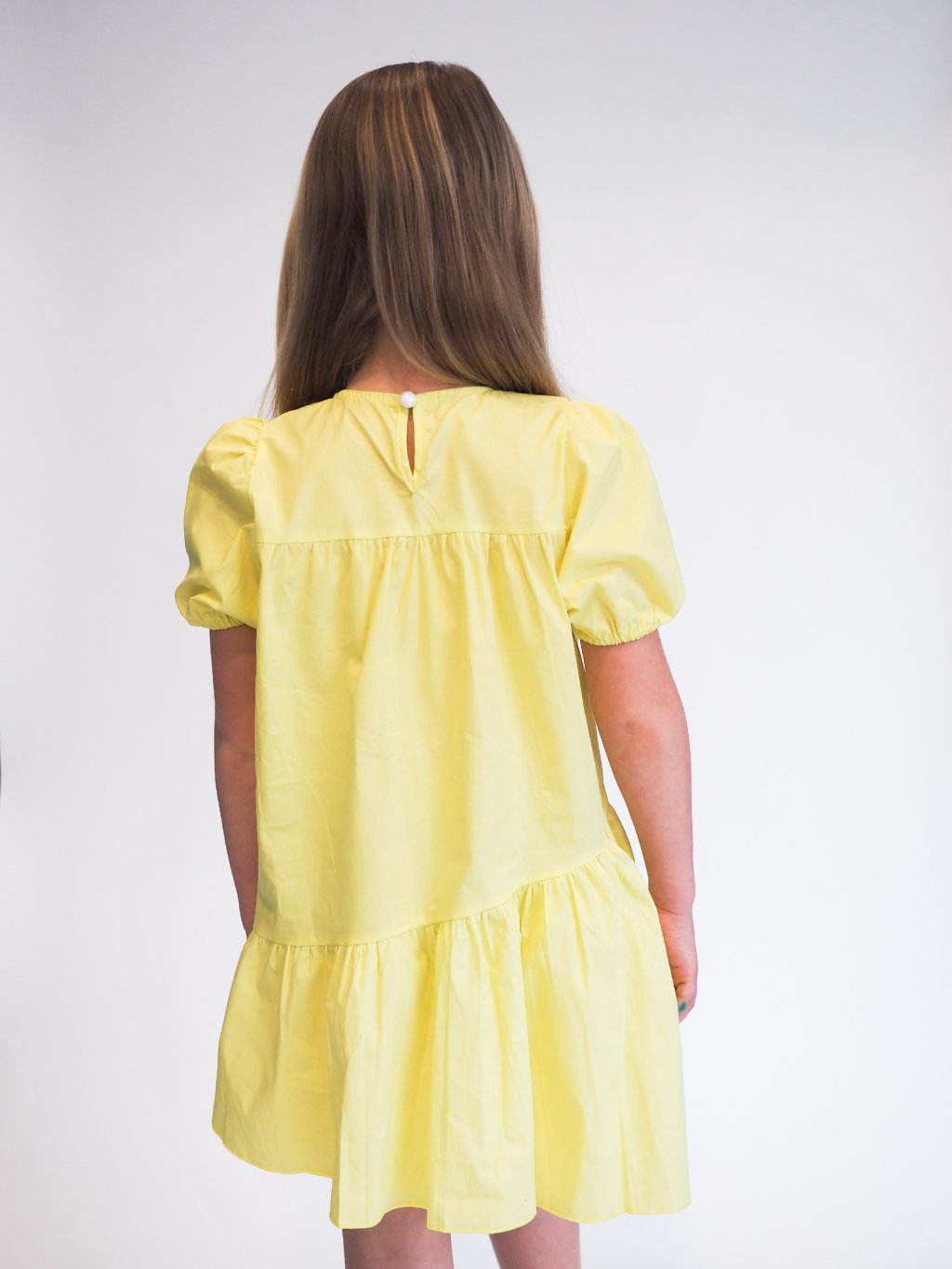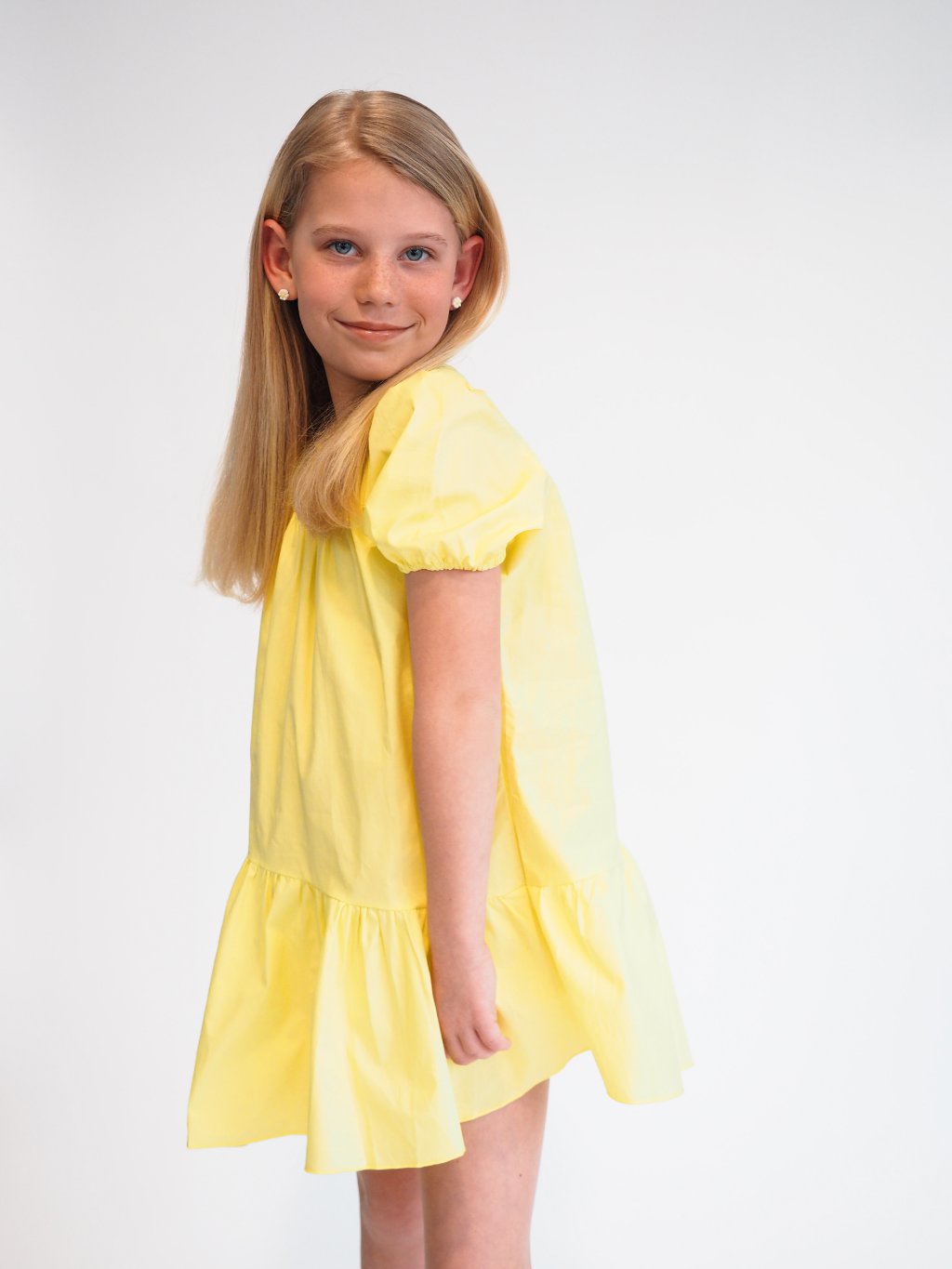Letní volné šaty s volánky ve žluté barvě. Udělejte radost vašim malým láskám volnými letními šaty.