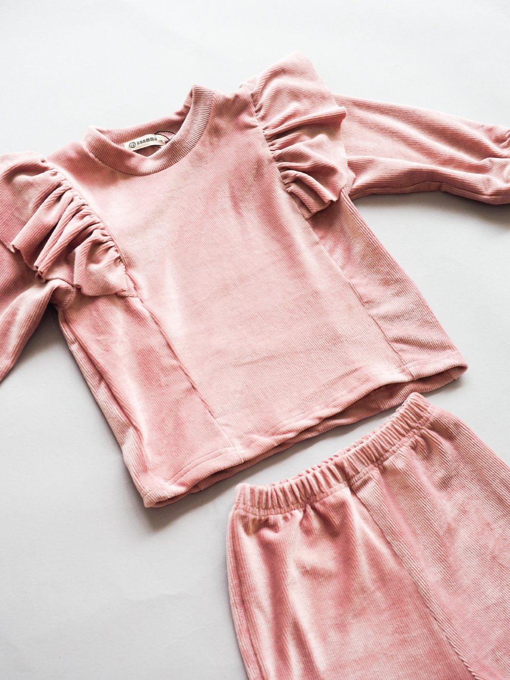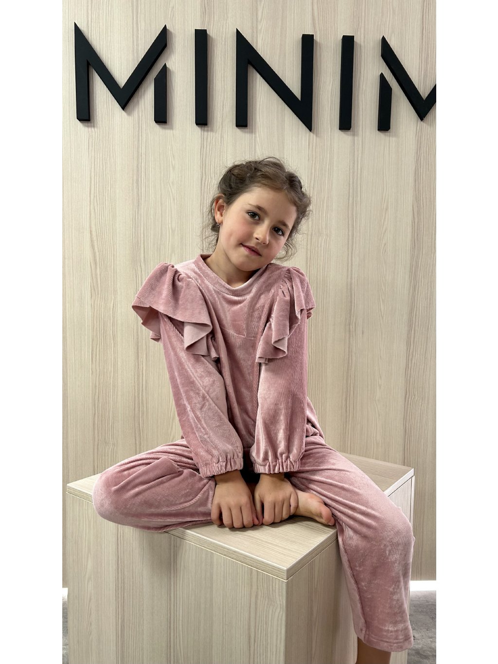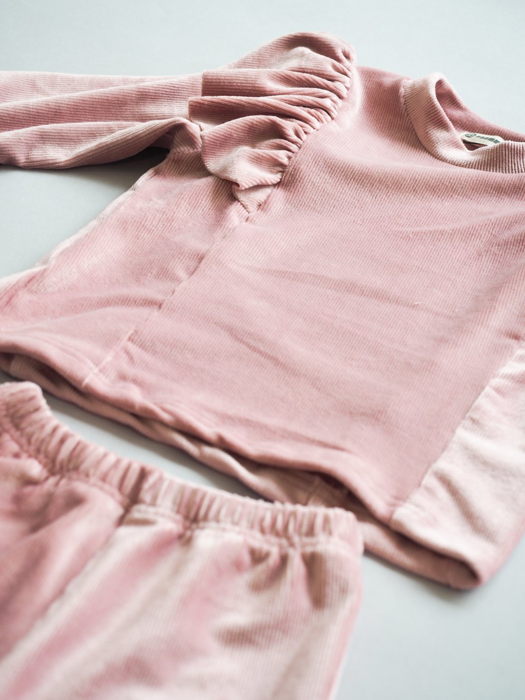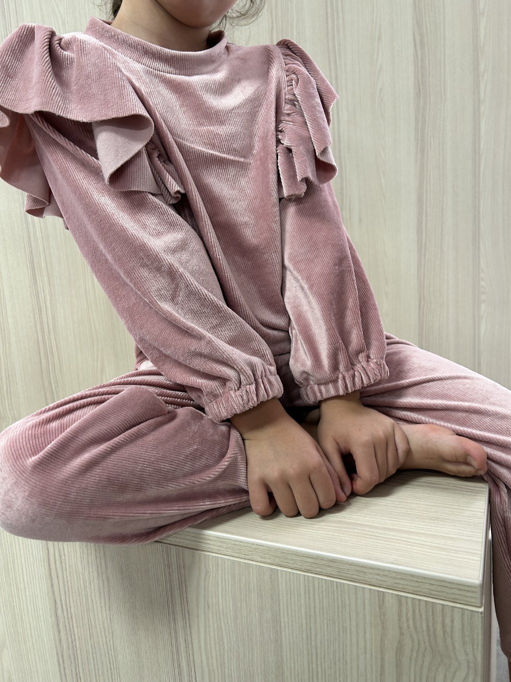 Semišový set mikiny s tepláky v růžové a béžové barvě.