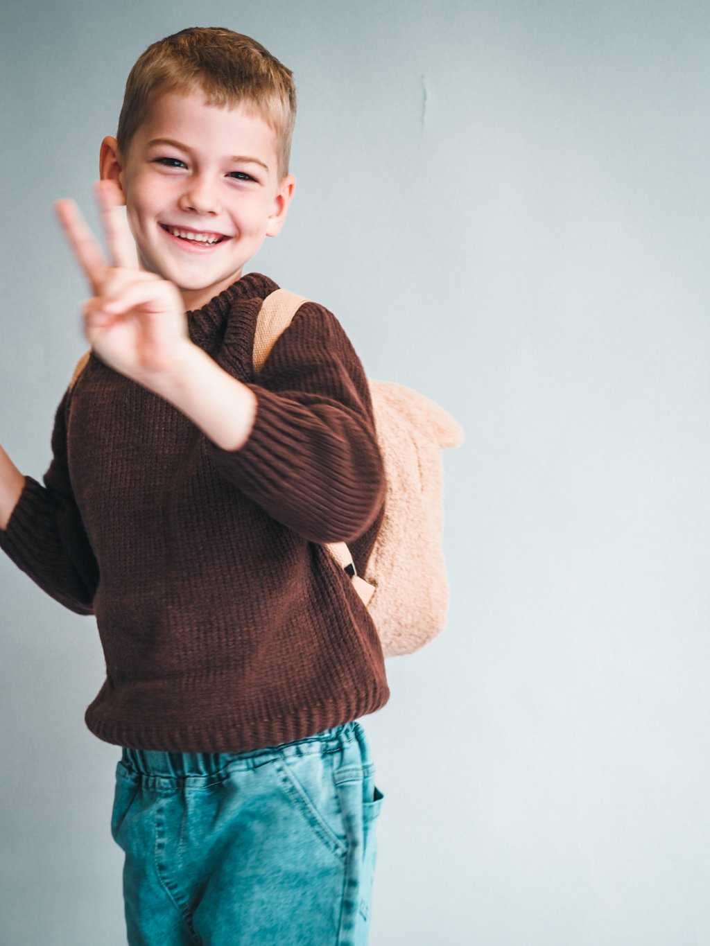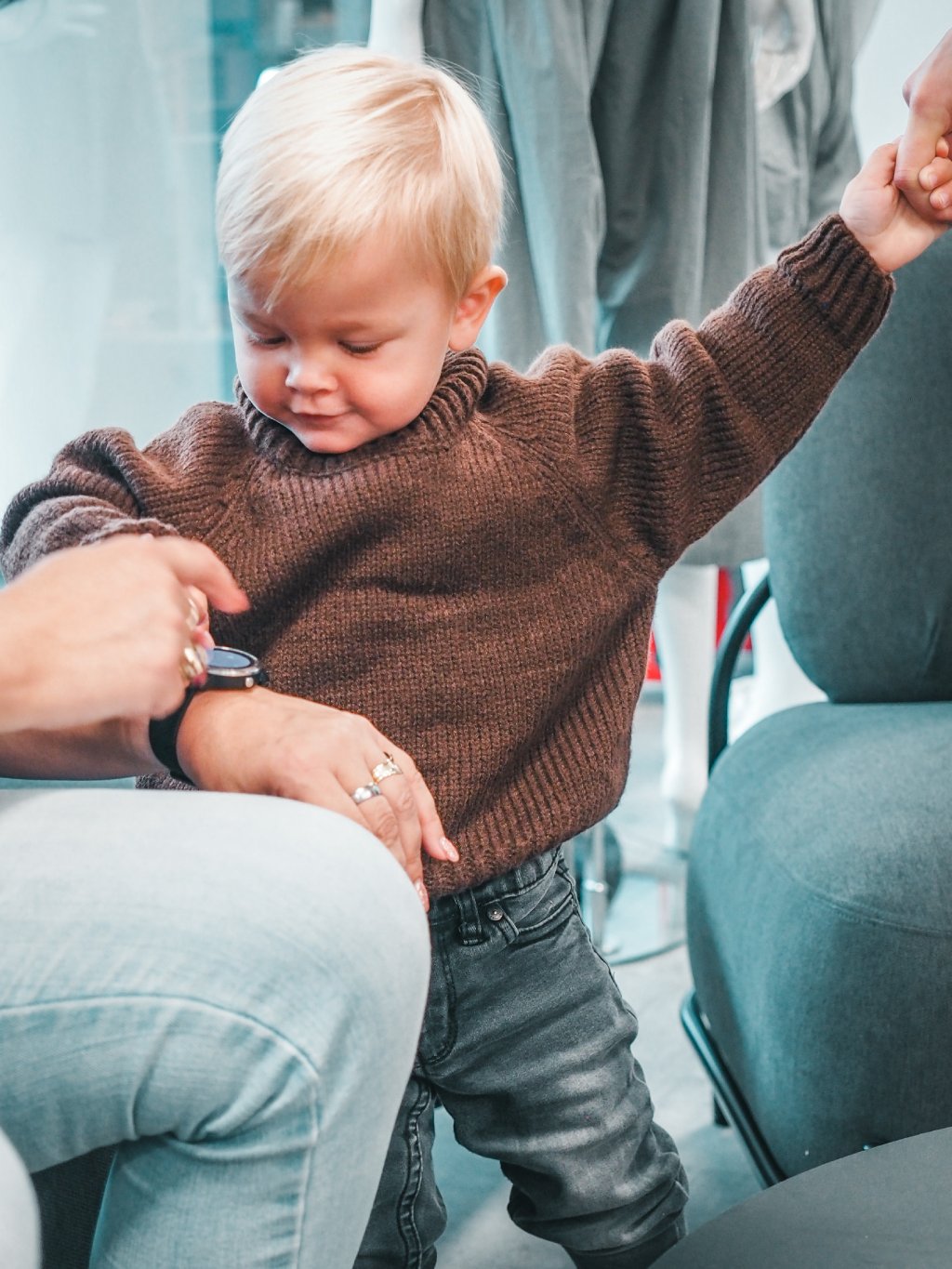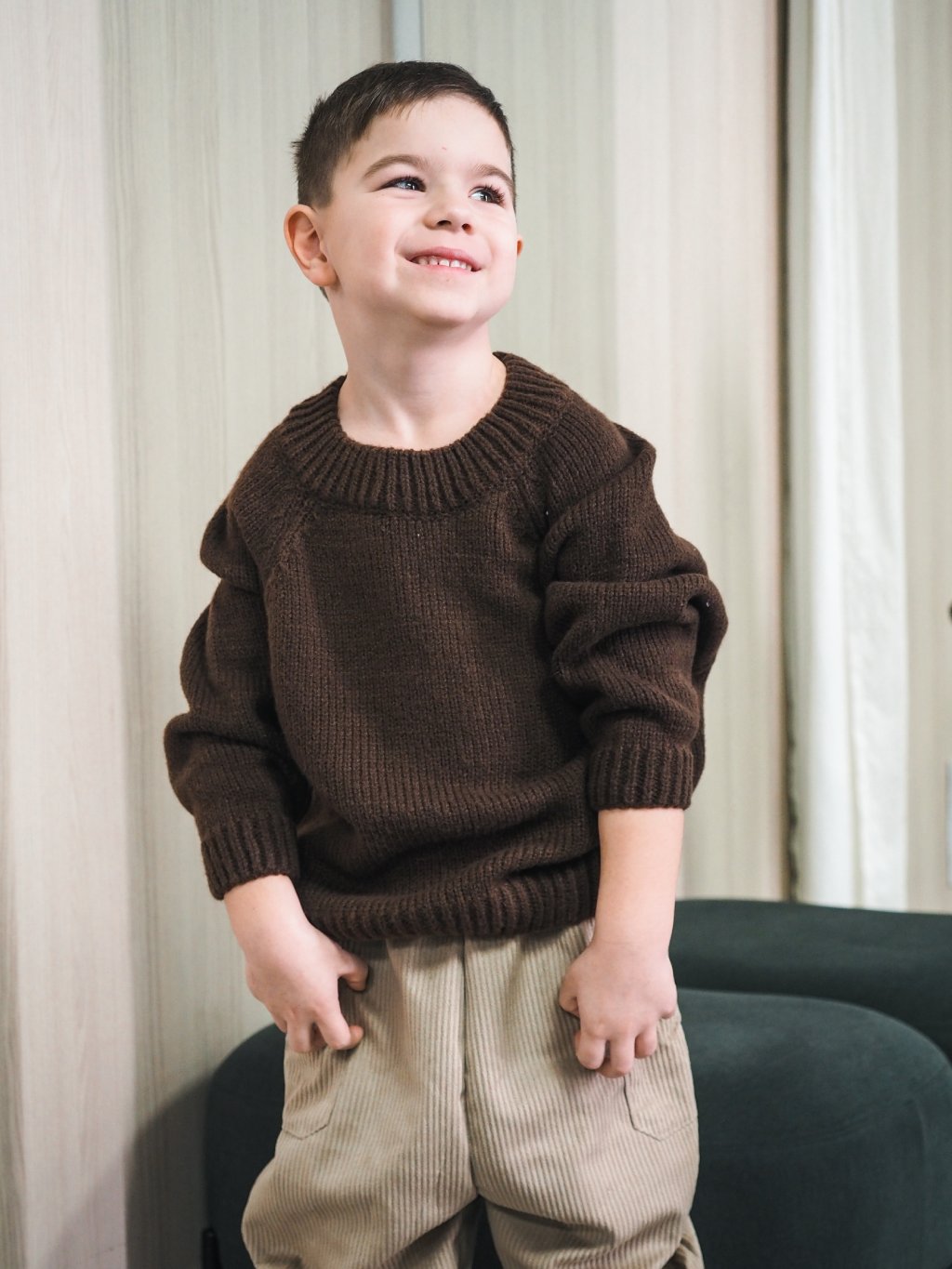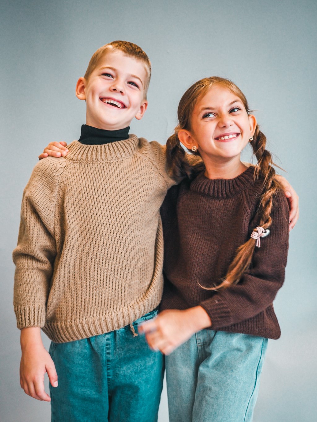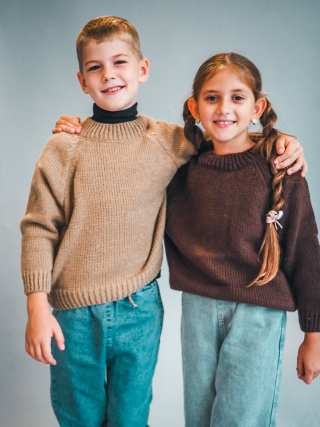 Pohodlný svetr pro vaše děti. Svetr nabízíme v hnědé a béžové variantě.